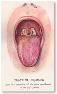 Diphtheria is a highly contagious infectious disease caused by the Corynebacterium diphtheriae bacteria. The infection targets the upper respiratory tract (nose and throat), although a milder form can affect the skin. Transmission is person to person, mainly through airborne droplets from an infected person’s cough or sneeze. Diphtheria also spreads by way of bodily secretions. It’s less common, but touching contaminated objects can also transmit the bacteria.