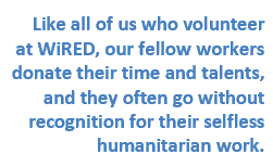 WiRED extends a special holiday shoutout to our remarkable volunteers and partners around the world. Our work would not be possible without this talented and dedicated network of people. Like all of us who volunteer at WiRED, our fellow workers donate their time and talents, and they often go without recognition for their selfless humanitarian work.