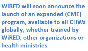 WiRED will soon announce the launch of an expanded (CME) program, available to all CHWs globally, whether trained by WiRED, other organizations or health ministries. This comprehensive program aligns strictly with WHO guidelines for CHW continuing education.