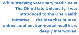 That early exposure planted the seed for a lasting interest in public health and volunteerism. While studying veterinary medicine at The Ohio State University, I was introduced to the One Health Initiative — the idea that human, animal, and environmental health are deeply interwoven. This concept continues to shape my work today. As a practicing veterinarian, I see firsthand how zoonotic disease, biosecurity, and preventive care are not isolated issues but fundamental pieces of the global health puzzle. In an increasingly interconnected world these are all things that we should care more about. One silver lining of the post-COVID era is that more people are starting to recognize the critical link between human and animal health.