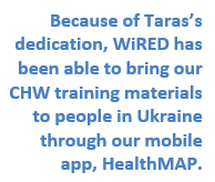 Because of Taras’s dedication, WiRED has been able to bring our CHW training materials to people in Ukraine through our mobile app, HealthMAP (for both Android and iOS). Today, even as the war continues, Ukrainians can access this training on their phones and learn essential health and first aid skills that help their families and communities.
