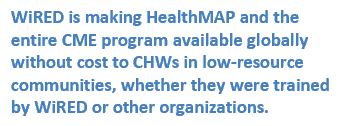 - WiRED is making HealthMAP and the entire CME program available globally without cost to CHWs in low-resource communities, whether they were trained by WiRED or other organizations.